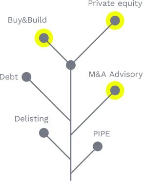 We provide our portfolio companies and selected clients with CF advisory services among which M&A, Debt and Post-Merger Integration consultancy services